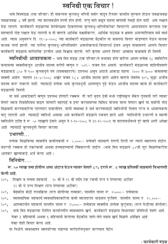 appreciated. This can be given in one installment or in multiple installment. Bhave Mitra Mandal has applied for